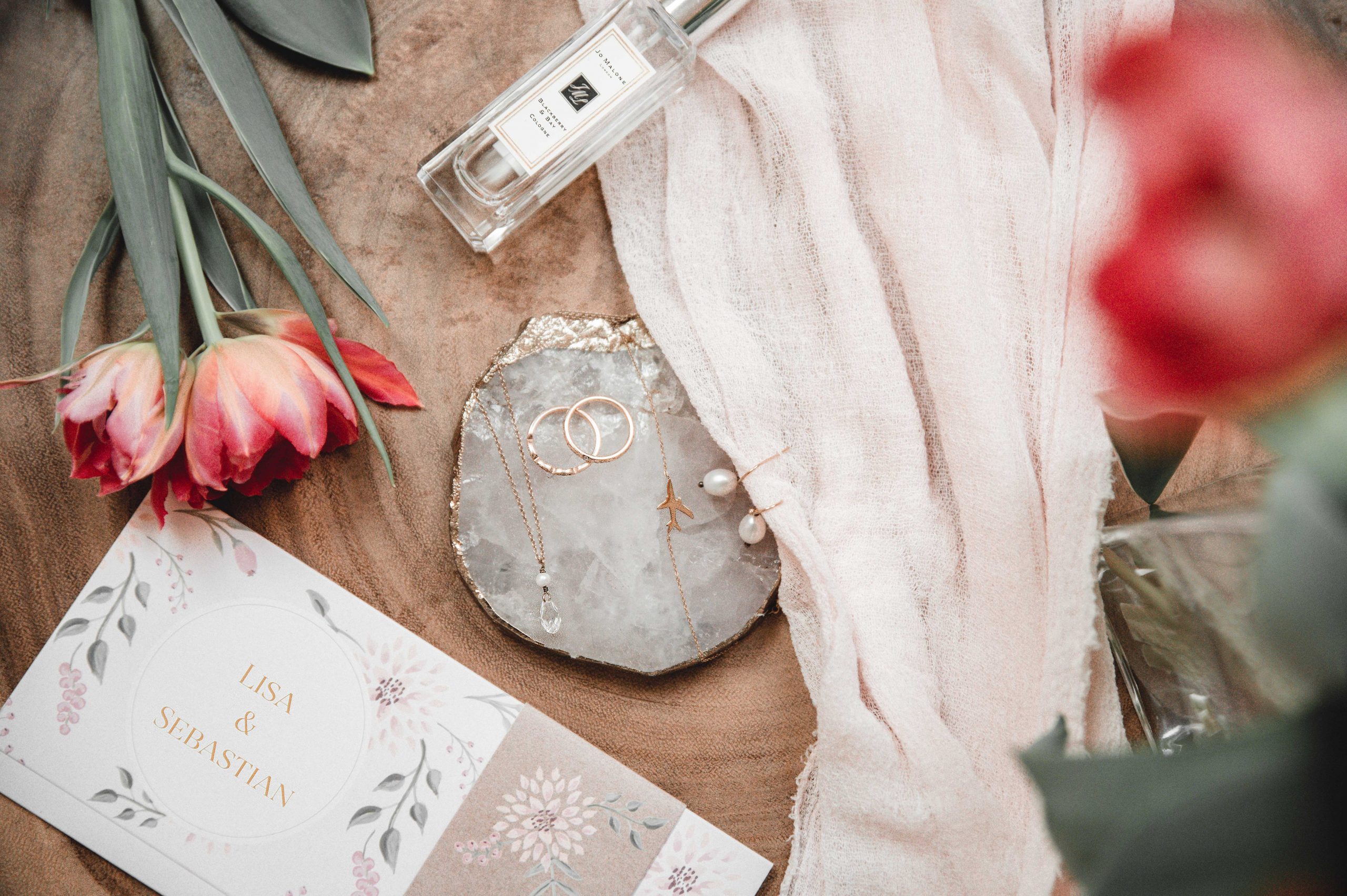 Das hängt ganz davon ab, was ihr alles festgehalten haben wollt. Gerne bin ich schon von Anfang an dabei und dokumentiere das „Getting ready“. An dieser Stellen können auch schöne Flatlays mit dem Schmuck und der Einladung entstehen.